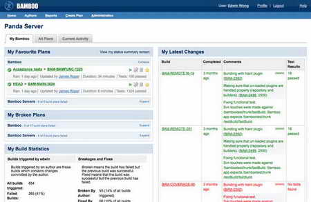 Build失敗被顯示為高亮並容易訪問 - 測試結果被解析並保存到Bamboo 裏;
